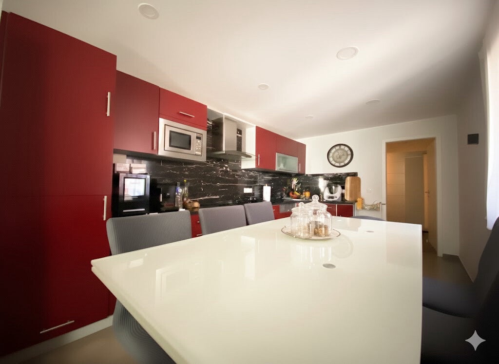 La rénovation complète de 2022 a été réalisée avec des matériaux haut de gamme et un souci du détail remarquable. L'ensemble de la maison bénéficie d'une construction solide avec dalles en béton, garantissant une excellente isolation phonique et thermique. Le système de chauffage neuf installé en 2022 assure un confort optimal tout au long de l'année.